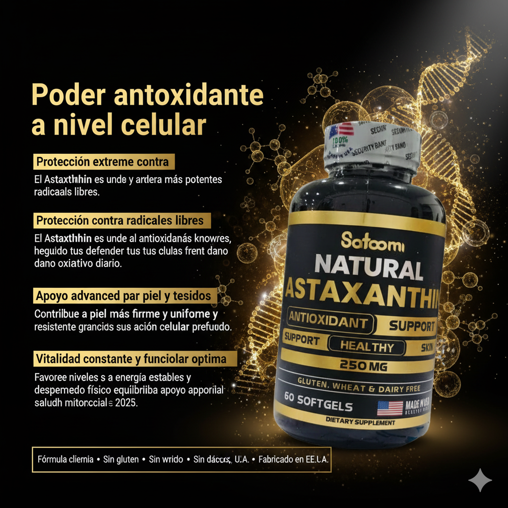 El Astaxanthin es un antioxidante extremadamente potente que ayuda a proteger las células, mejorar la piel, reducir el estrés oxidativo y apoyar el bienestar general.